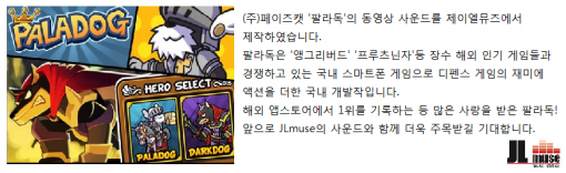 (주) 페이즈캣 "팔라독(PALADOG)" 사운드 제작